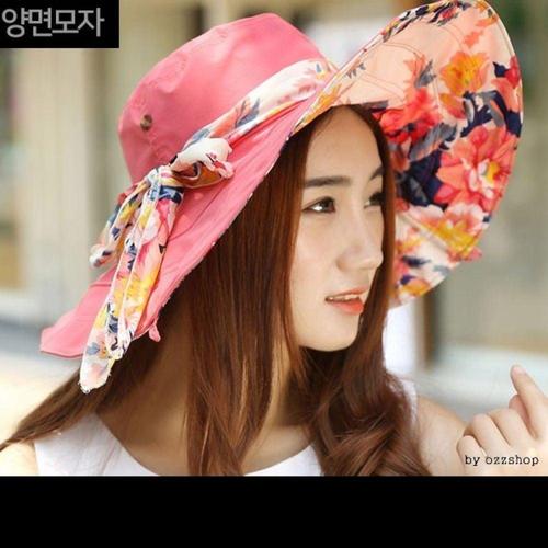 [다잇템]여성 와이어챙 여행룩 뒷리본 썬캡 소재 모자