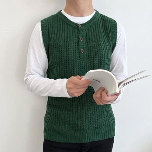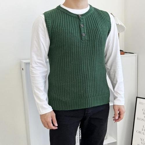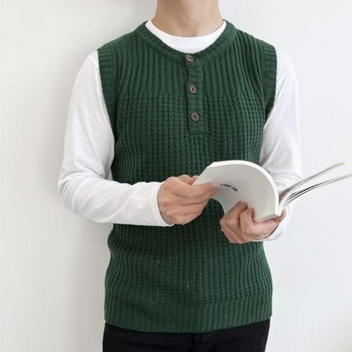 [엄지척]심플한 캐주얼 니트조끼 남성 헨리넥 와플 빈티지패션_20528338_667501