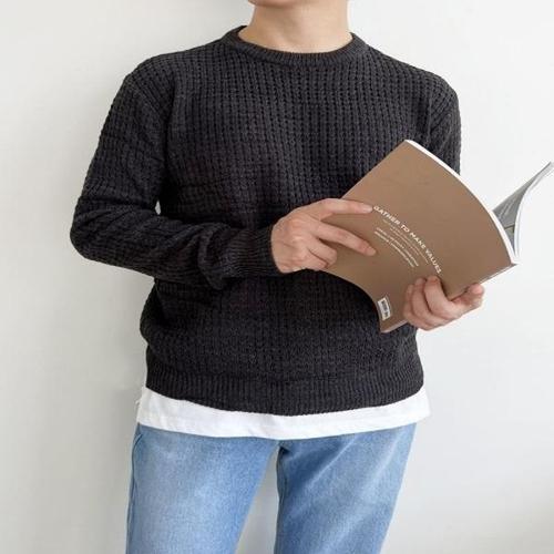 [엄지척]1004M 남성라운드넥와플데일리 2L-CHE 니트_20484199_667501