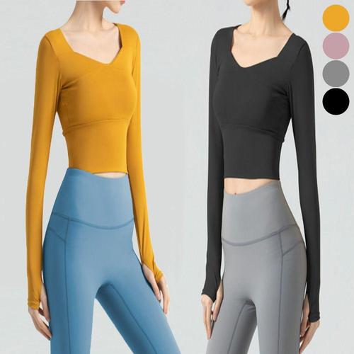 [셀럽하우스]여성 MCHA5505 스퀘어넥 크롭 긴팔 요가 티셔츠 운동복 헬스복