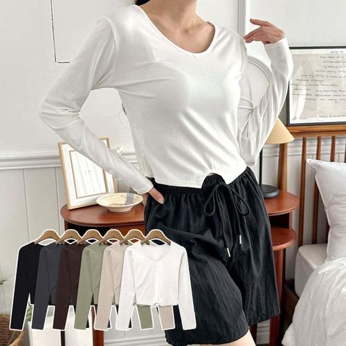 [셀럽하우스]여성 ALJE6539 무지 크롭 요가 일상복 운동 스쿱넥 긴팔 티셔츠