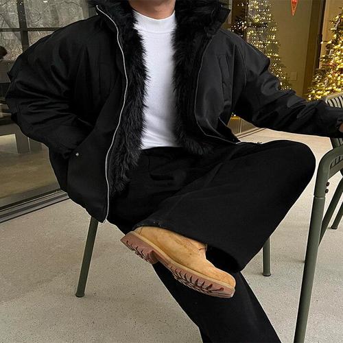 [원스톤]원스톤 하이클래스 퍼 하이넥 점퍼 2color 블랙퍼 토끼털 따뜻한 오버핏 남녀공용 겨울 눈