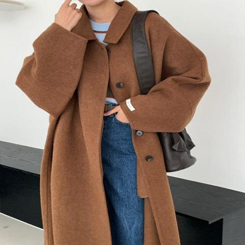 울100 핸드메이드 롱 코트 루즈핏 유니크코코