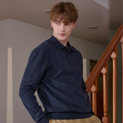 [워모]남성 울 캐시미어 블렌딩 퀼티드 트리밍 코트 네이비