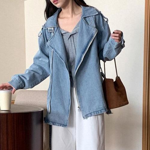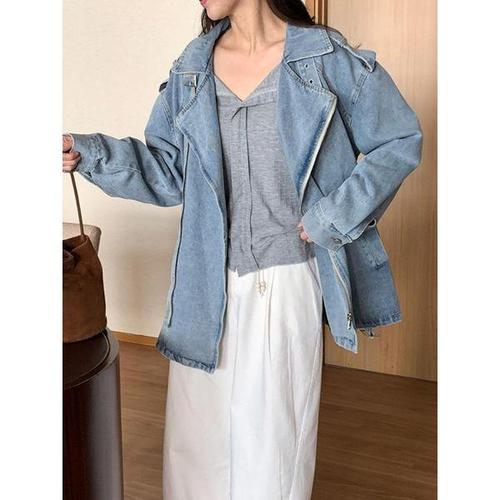 [탑온탑]오베르 소프트 워싱 오버사이즈 벨티드 데님 라이더 자켓