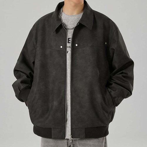 [셀럽하우스]자켓 RLFZ8357 레더 집업 카라 아우터 남성 워싱 페이크 가을