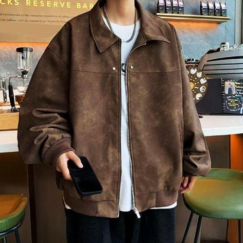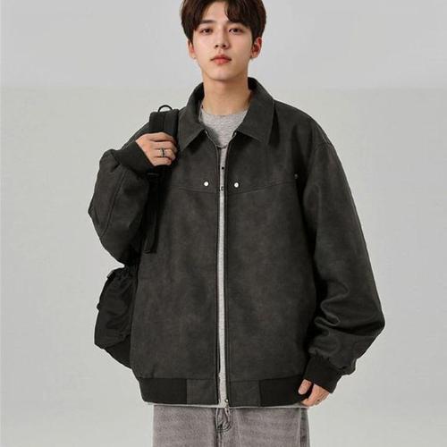 [셀럽하우스]남성 SXLU3262 페이크 레더 카라 워싱 집업 자켓 가을 아우터