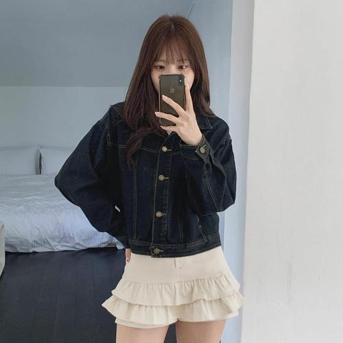 [옷자락]여성 키치무드 워싱 코튼 루즈핏 세미크롭 데님 자켓