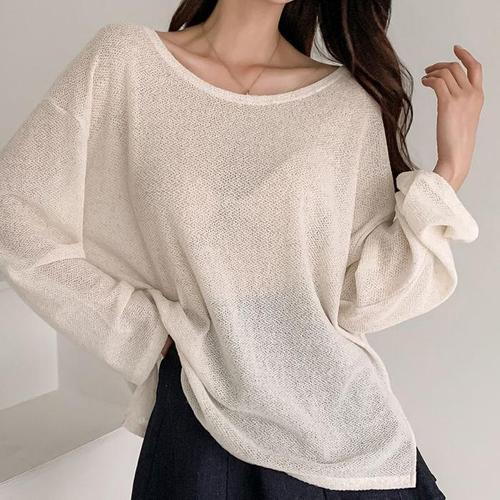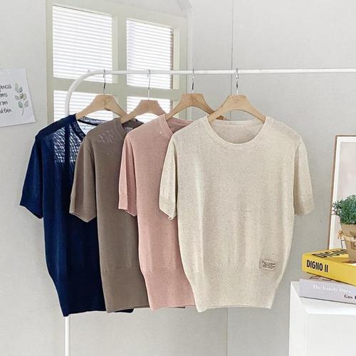 [다잇템]여성 클래식 베이직 반소매 쿨 U넥 마원단 니트_3 (17799827A)