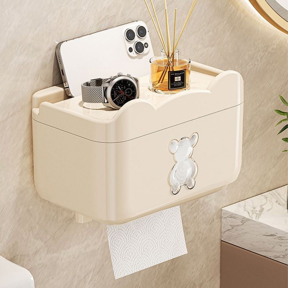 베이지 베어 무타공 접착식 욕실 화장실 선반형 휴지걸이 방수 케이스