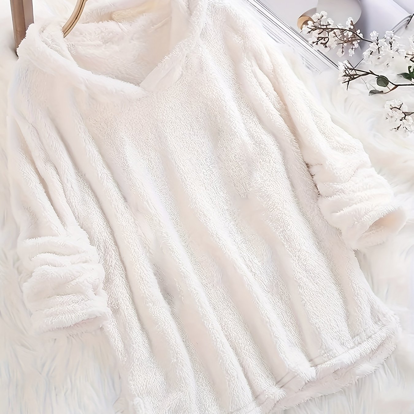 TEMU 양털 단색 까마귀, 캐주얼 긴팔 후드 티 셔츠, 여성 의류