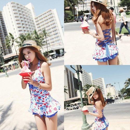 은창V컷 여리한 플라워 원피스 수영복 비키니 여름 모노키니 래쉬가드 일체형 치마 세트 몸매보정