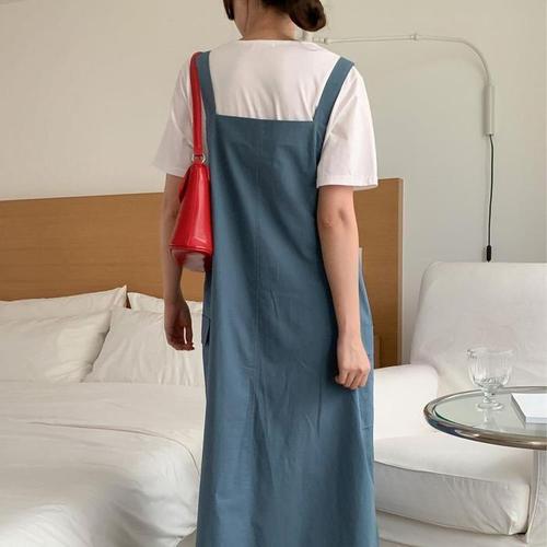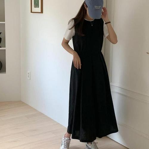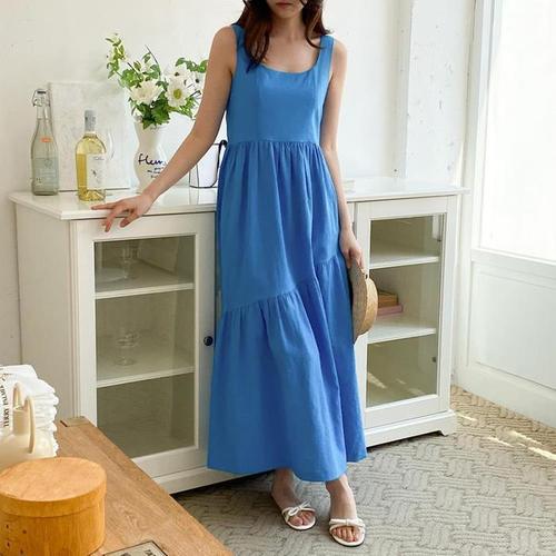 [다잇템]여자 끈 마원단 롱 U넥 슬리브리스 원피스 (10368224A)