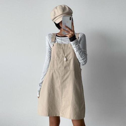 [다잇템_패션]여자 캥거루 오버롤 나들이 면원단 미니원피스