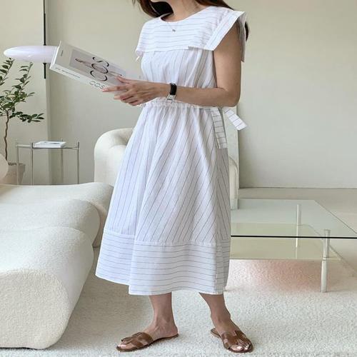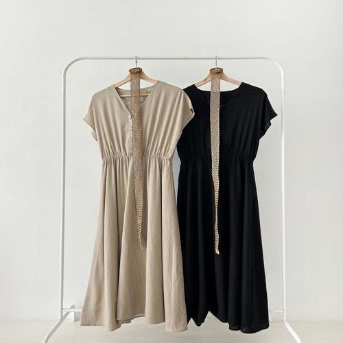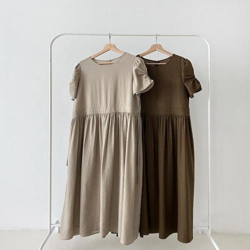 [다잇템]여자 면원단 중간 내추럴 슬리브리스 원피스 (10951228A)