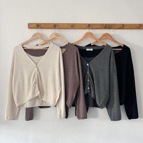 [다잇템_패션]여성 면원단 카디건 버튼 V넥 데일리웨어