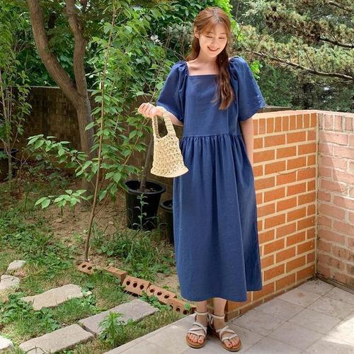 [다잇템]여자 민무늬 롱 마원단 스퀘어넥 원피스 (10370787A)