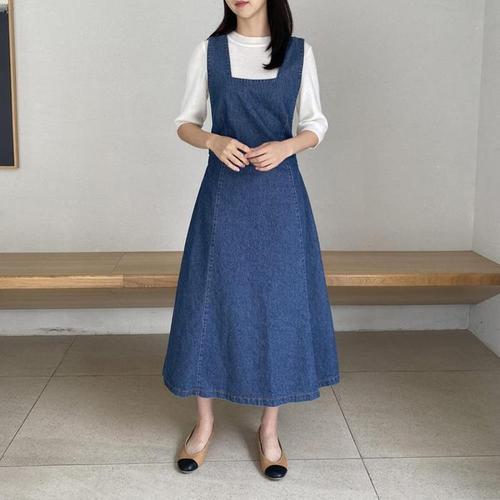 [다잇템]여자 스퀘어넥 진 면원단 에이라인 원피스 (10953910A)