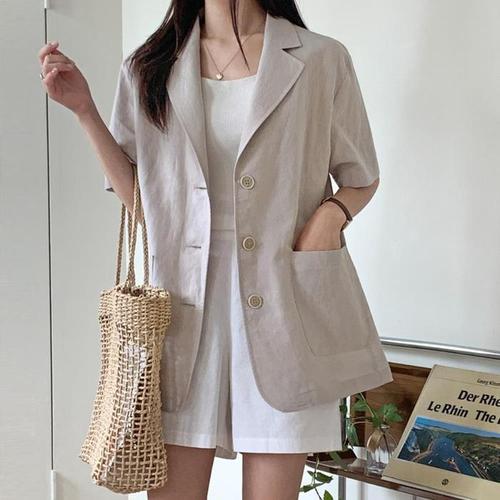 [다잇템]여자 마원단 박시핏 반소매 들러리룩 자켓 (10305794A)