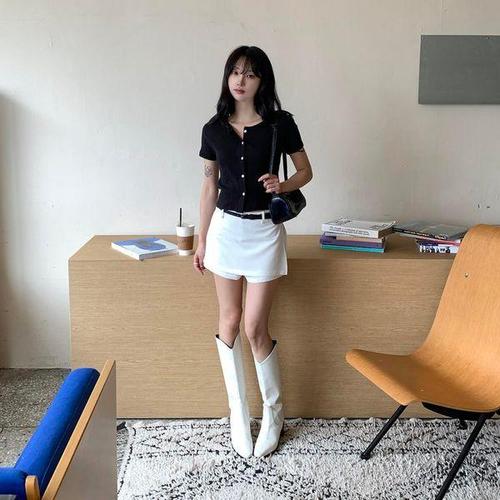 [다잇템]여성 면원단 탱크 버튼 반소매 U넥 가디건