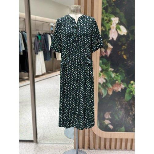26 SS 가니 여성 그린 블루 프린트 미디 드레스 232144F054001