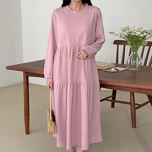 루어스룸 플레인 루즈핏 라운드넥 하객룩 임부복 긴팔 빅사이즈 니트 롱 원피스