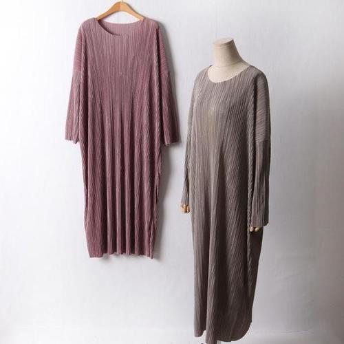 [애비뉴투지]엄마옷 루즈 빅 주름 플리츠 여성 가을 겨울 라운드 긴팔 롱 원피스 K11250 50대 60대 중년..