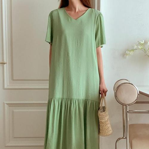 [다잇템]여자 코디 롱 아코디언 반소매 4컬러 원피스 (10590951A)