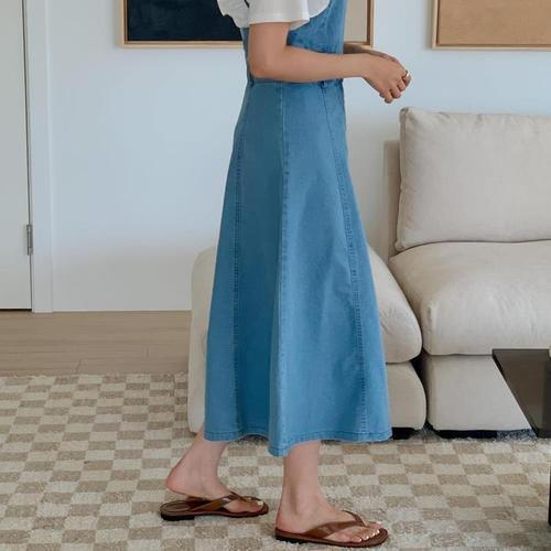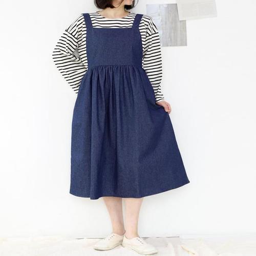 [다잇템]여자 서스팬더 코디 잔주름 스퀘어넥 진 원피스 (10418867A)