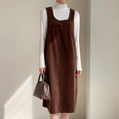 [다잇템]여자 헨리넥 가을겨울 코듀로이 코디 롱원피스 (10951295A)