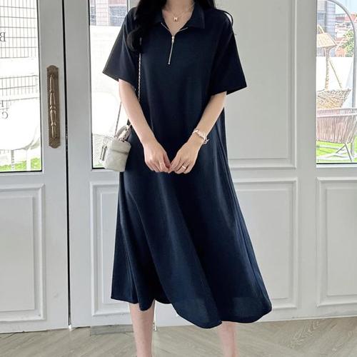 1+1 스보리 쿨링 스판 반팔 원피스 블랙 네이비
