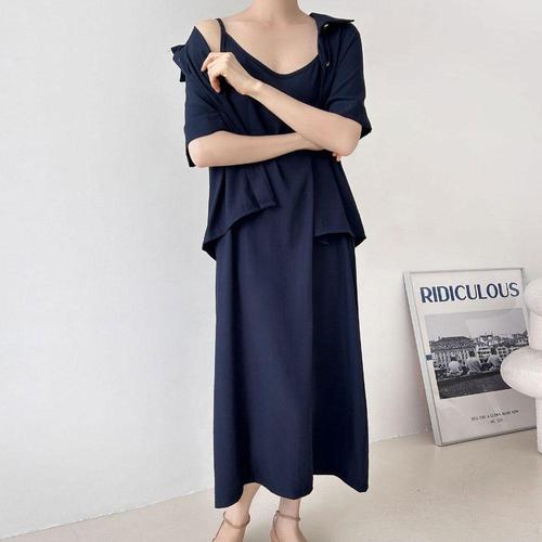 까르죠아 66~110 반팔 셔츠 자켓 민소매 원피스 2종 코디 세트 여름 하원룩 마실룩