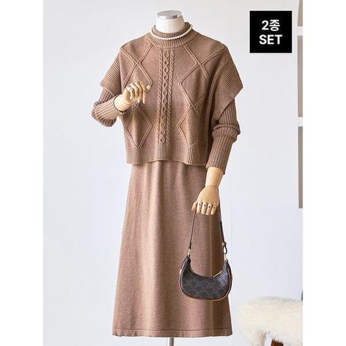 [커스텀에이블]반목조끼 니트원피스 2종세트_T2511SE040D