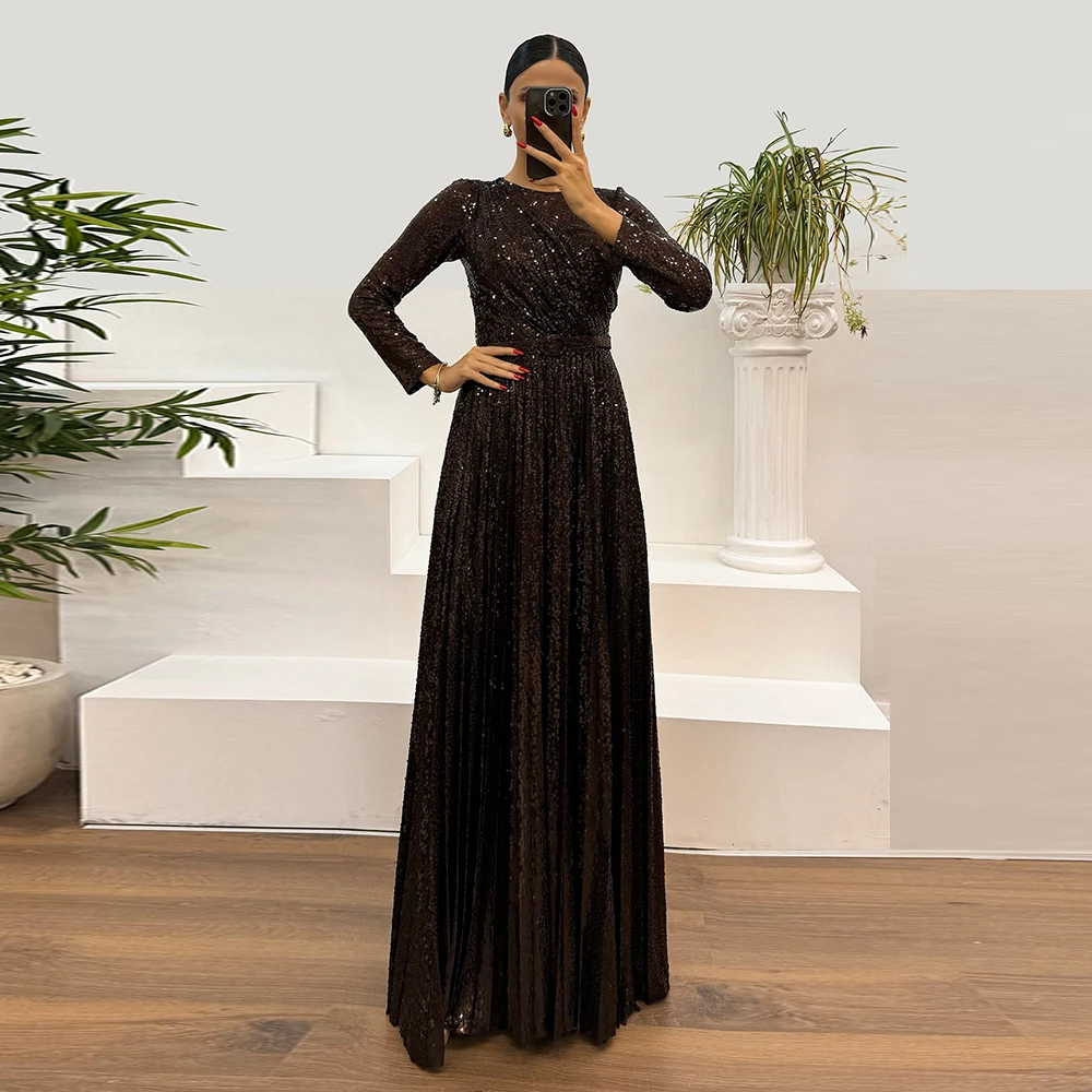 현대적인 맞춤형 글리터 사우디 드레스 A라인 플로어 기장 이브닝 가운 긴팔 정장 웨딩 파티 드레스