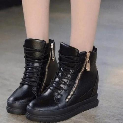 슈리오 여성 기모 사이드지퍼 경량 청키솔 하이탑 스니커즈 6cm