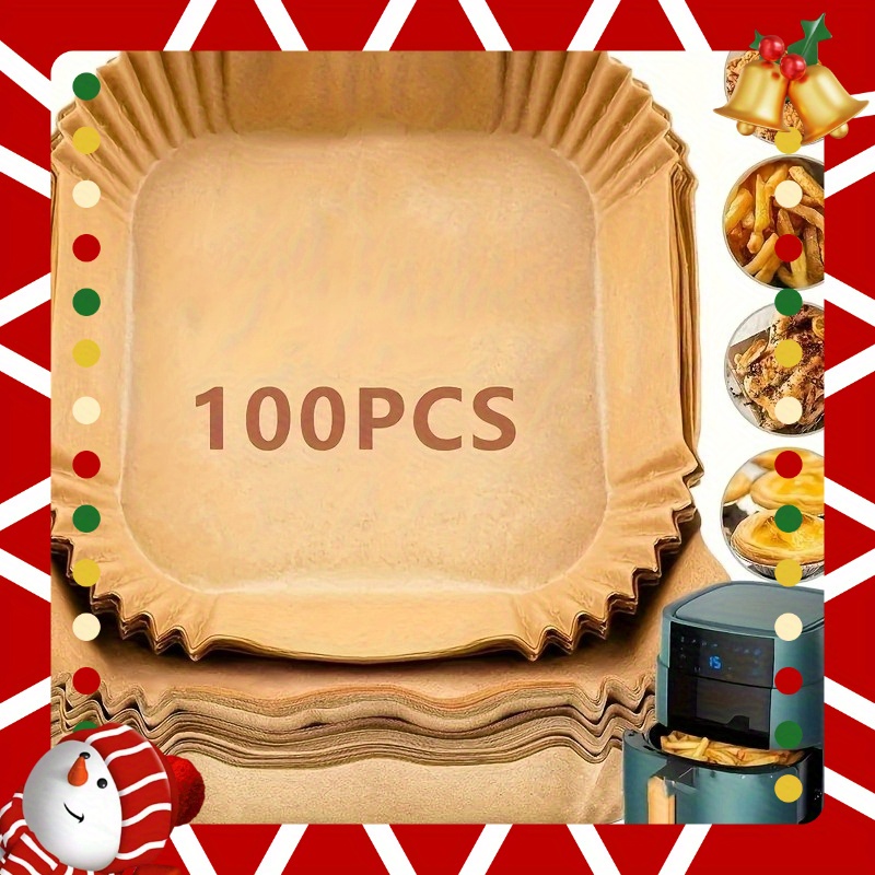 TEMU 100개 헤비듀티 논스틱 베이킹 시트 - 450°F(232°C) 내열성, 방수 기능, 에어프라이어/오븐/전자레인지/쿠키/피자/치킨윙/감자튀김용 프릴 가장자리, 식품등급 종이 라이너, 쉬운 청소, 주방 필수품, 고온 저항, 요리 준비용