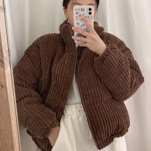 |CMJ6C2F|여성용 일상 스탠드넥 골덴 웰론 숏패딩 재킷