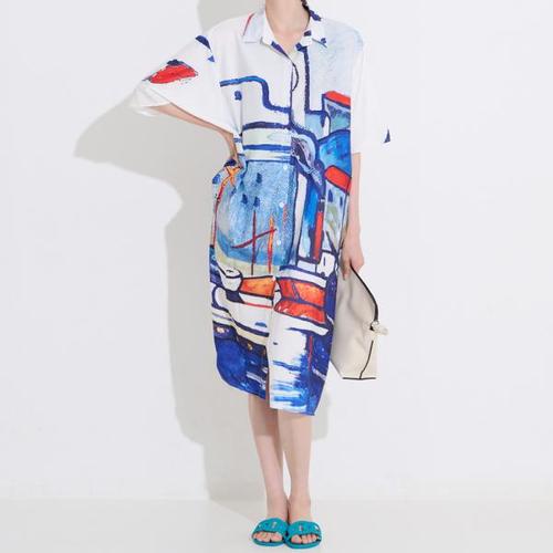 [유니케]바니 아트패턴 시스루 셔츠 원피스