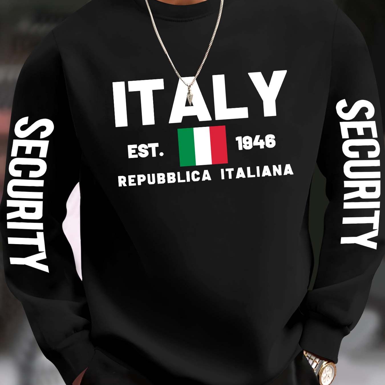 TEMU 남성용 이탈리아 테마 이탈리아 국기 & 체크무늬 스웨터 - 캐주얼 라운드넥 풀오버, 이탈리아 슬로건 포함, 가을/겨울용 셔츠 스타일, 이탈리아 디자인 (드라이클리닝 금지) - 스타일리시 레이어링 아이템