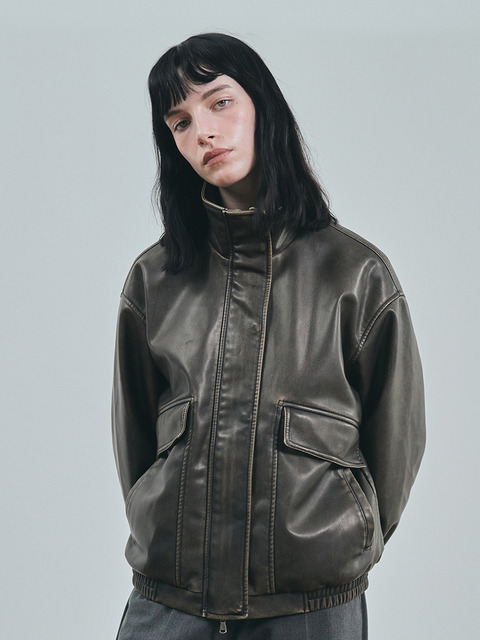 [유니폼브릿지] 페이크 레더 재킷(여성) 브라운
