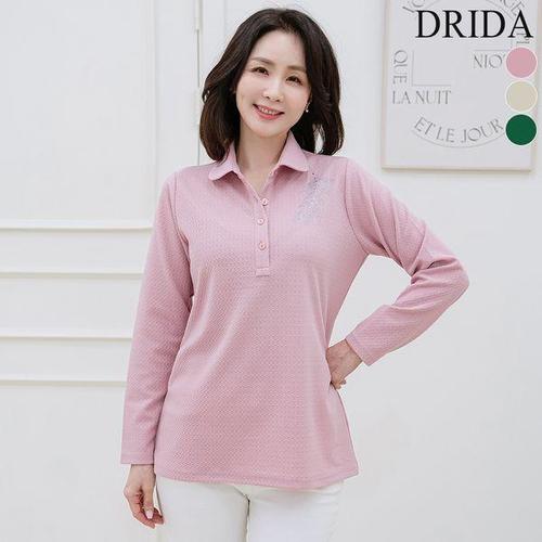 [드리다]엄마옷 여자 봄 카라 반오픈 핫픽스 엠보 스판 빅사이즈 티셔츠 50-60대 중년여성 마담옷 선물 ..