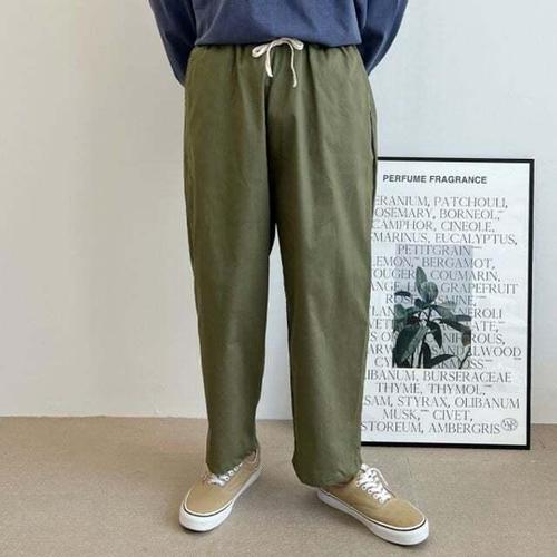 [BZJKFUMH_4B]루즈핏 긴바지 면 배기팬츠 세미 허리밴딩