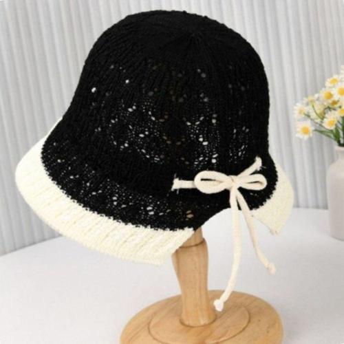 피부보호모자 투톤 리본끈 보넷 햇 블랙 WFHG0BW
