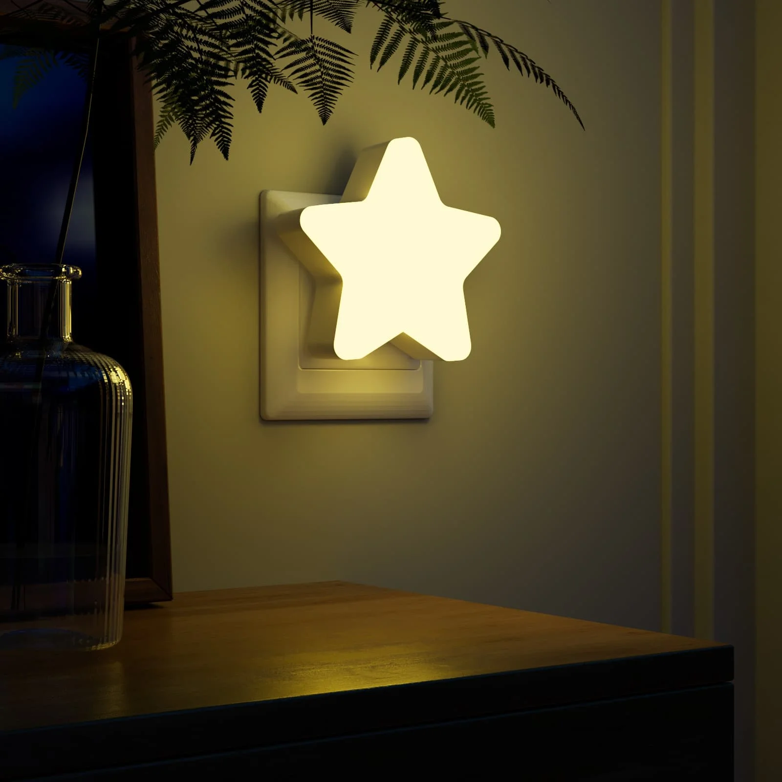 별 모양 야간 조명 LED 조도 감지 야간 조명 플러그인 자동 켜짐/꺼짐 어린이 침실 계단 복도 침대 헤드 야간 램프
