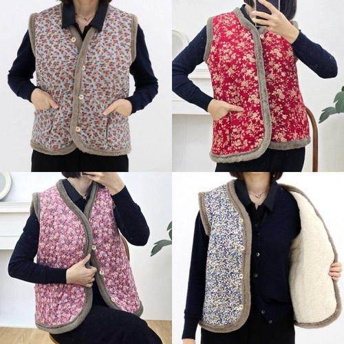 [오너클랜]인기상품 융털 보온 조끼 여성 꽃 패턴 김장용 방한 조끼 [WFLHJOV_260208]
