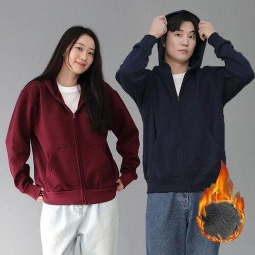 [끌레아]융털 남녀공용 커플 안감 점퍼 후드집업 오버핏 기모 룩 여성점퍼 커플