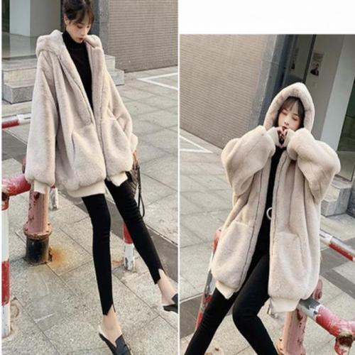 [끌레아]집업 밍크퍼 페이크 오버핏 후드집업 후드 여성융털 후리스 점퍼