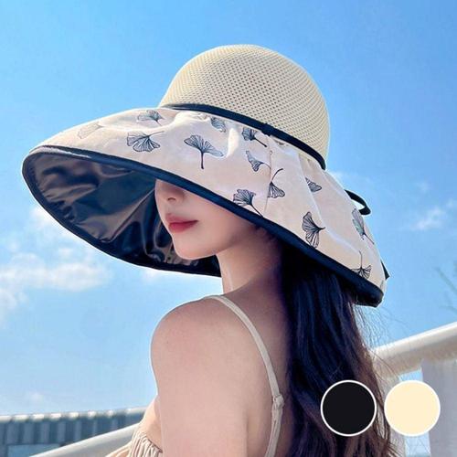 여름 햇볕 차단 모자 세련된 은행잎 패턴 WFH2XLL