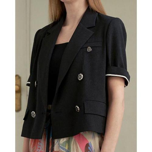 [르니앤맥코이]르니 실버 브로치 테일러드 더블 반팔 자켓 MK06JK212HJY