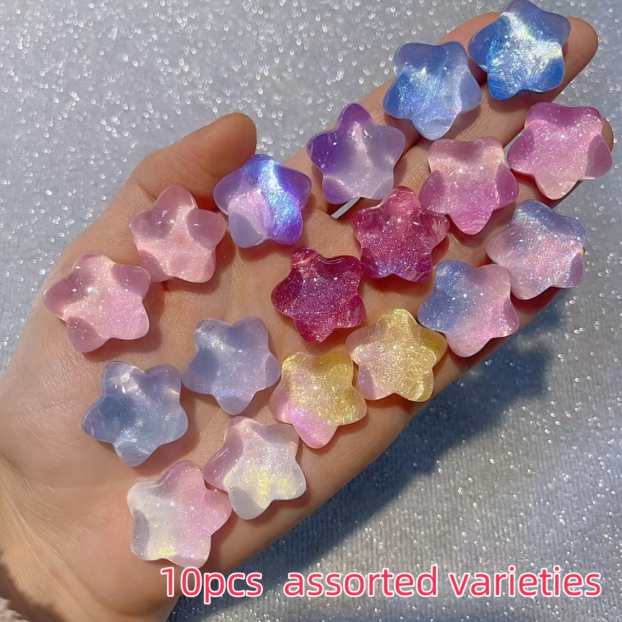 TEMU 10개 비침성 혼합 색상 빛나는 미세 플래시 별, DIY 공예, 보석 만들기, 열쇠고리 및 헤어 액세서리 장식에 사용, 디자인 보석 만들기, 창의적이고 예술적인 프로젝트에 매우 적합! 비즈 어소트먼트